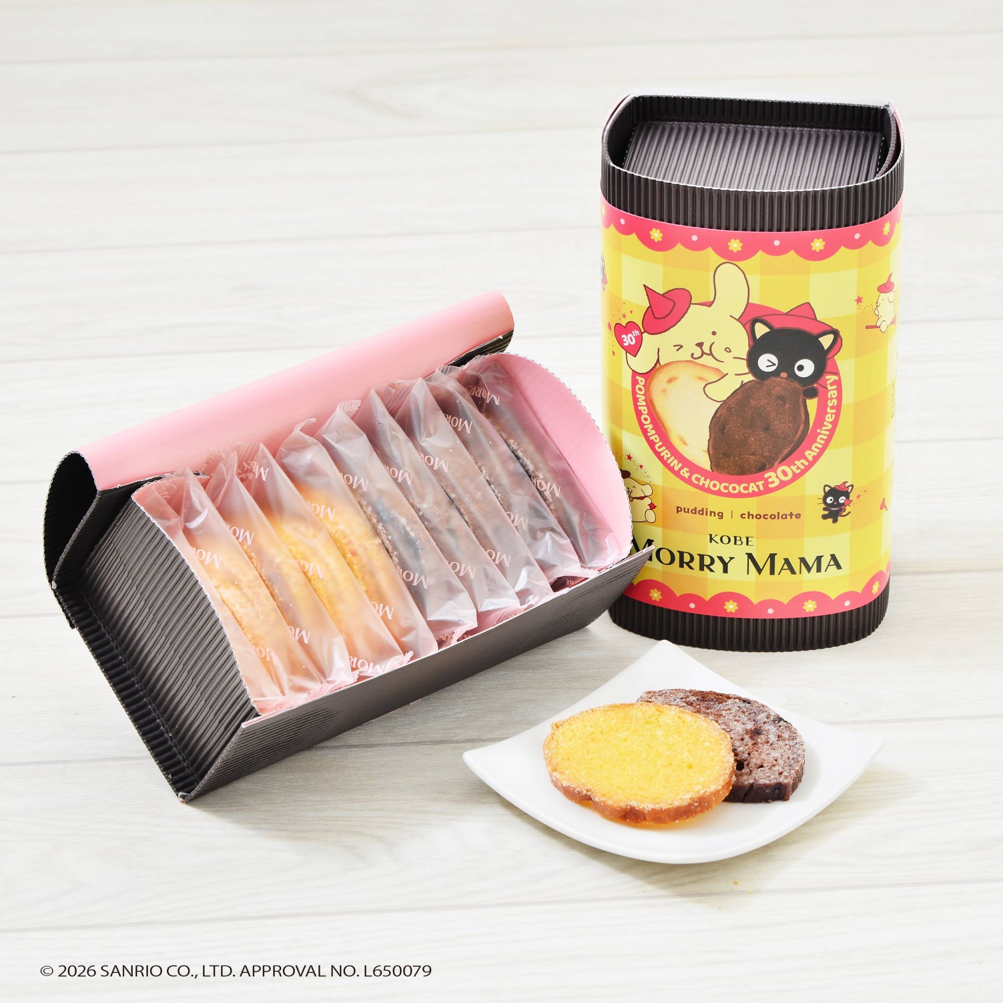 神戸発の焼き菓子ブランド 神戸モリーママ と、株式会社サンリオの人気キャラクター ポムポムプリン & チョコキャットが夢のコラボ。